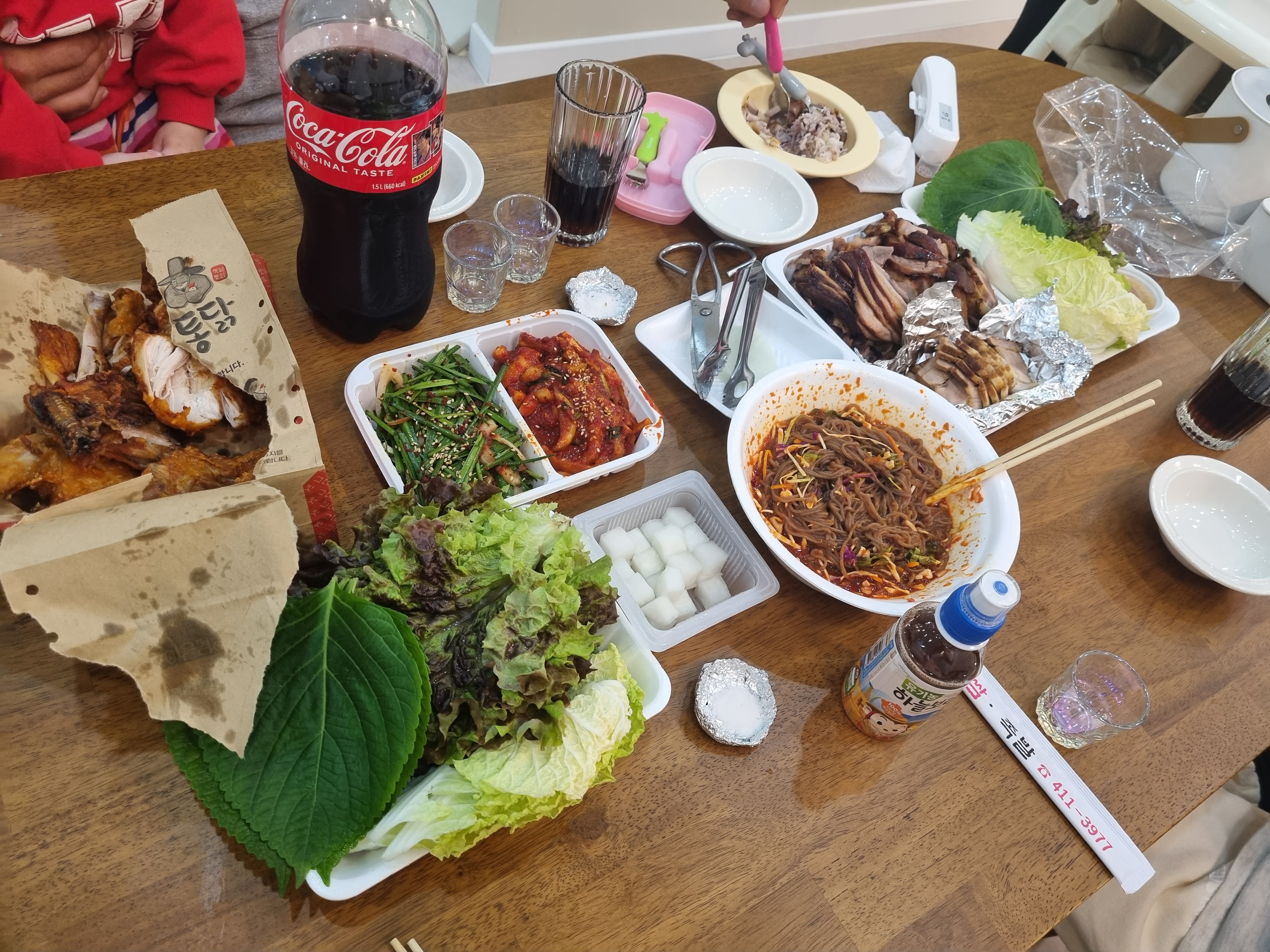 아이들이 잘즐기면서 놀아주는 사이에 엄마아빠들은 간단히 배달음식으로 저녁을 해결합니다^^