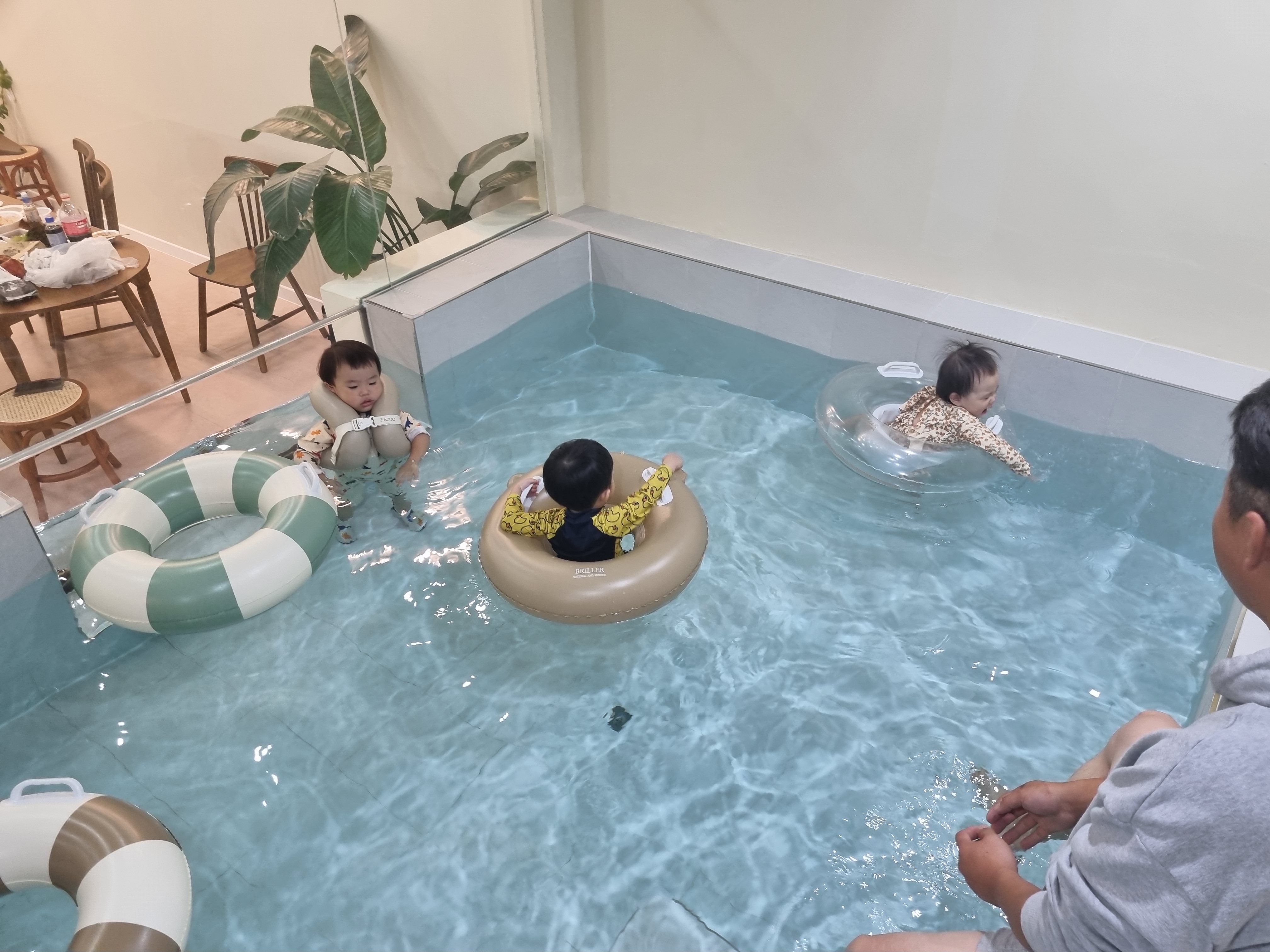온수풀 세살 아이들이 놀기에 너무 딱좋은 사이즈였어요